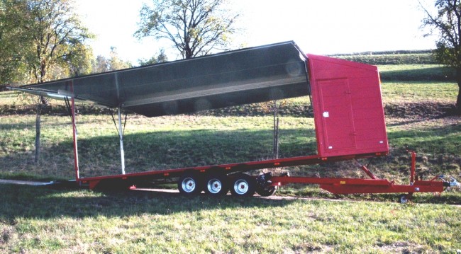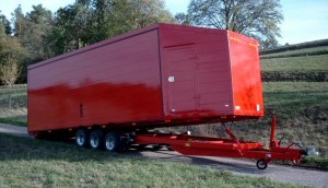 Komplett geschlossener Kofferaufbau mit 3-seitig Klappen, 2 Schlupftüren vorne in der Schräge, 3-Achs- Fahrgestell, Rückwärtskipper mit langer Auffahrrampe, Gesamtgewicht 3.500 kg, Länge 7.000 mm, Breite 2.300 mm, Höhe 1.900 mm, Alu-Boden, Lackierung innen und außen. Radantrieb mit Funkfernbedienung zum rangieren, elektrische Seilwinde mit Funkfernbedienung, elektrohydraulisches Kippaggregat mit Funkfernbedienung, Notstromaggregat mit DTM-Tankstutzen von außen betankbar, Ladestrom, separates Ladegerät für die Batterie, 230 V Elektroanschluss, Staukasten mit Rollladen für die Aggregate und Ersatzbereifung, exklusive Außenbeleuchtung sowie Halogen Innenbeleuchtung.