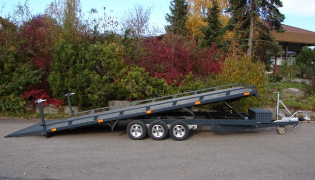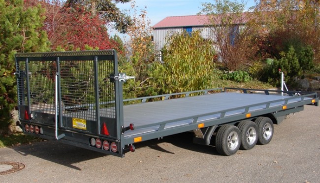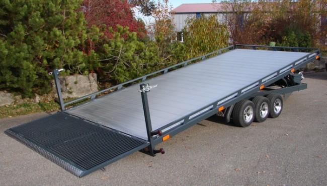 Dieser Anhänger ist auch für den Transport von Fahrzeugen mit Tieferlegung und Spoiler geeignet.